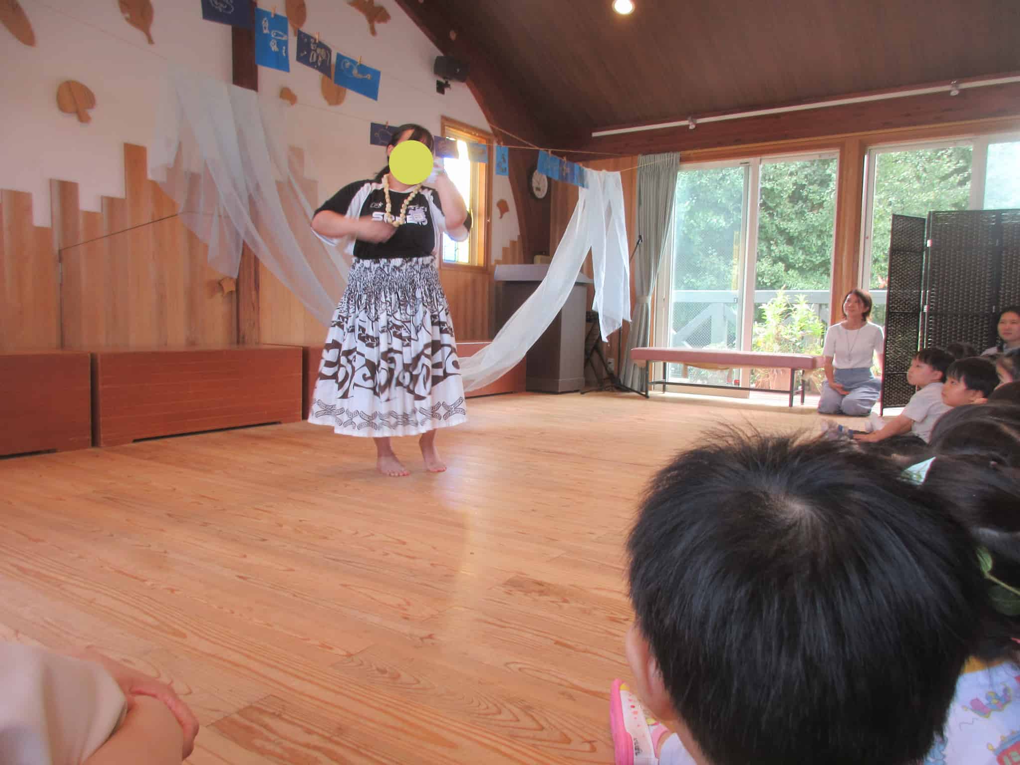 モアナの音楽に合わせたフラダンスの発表では、音楽とダンスの世界観に引き込まれ、真剣な表情で見つめる姿がありました。