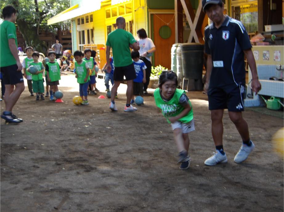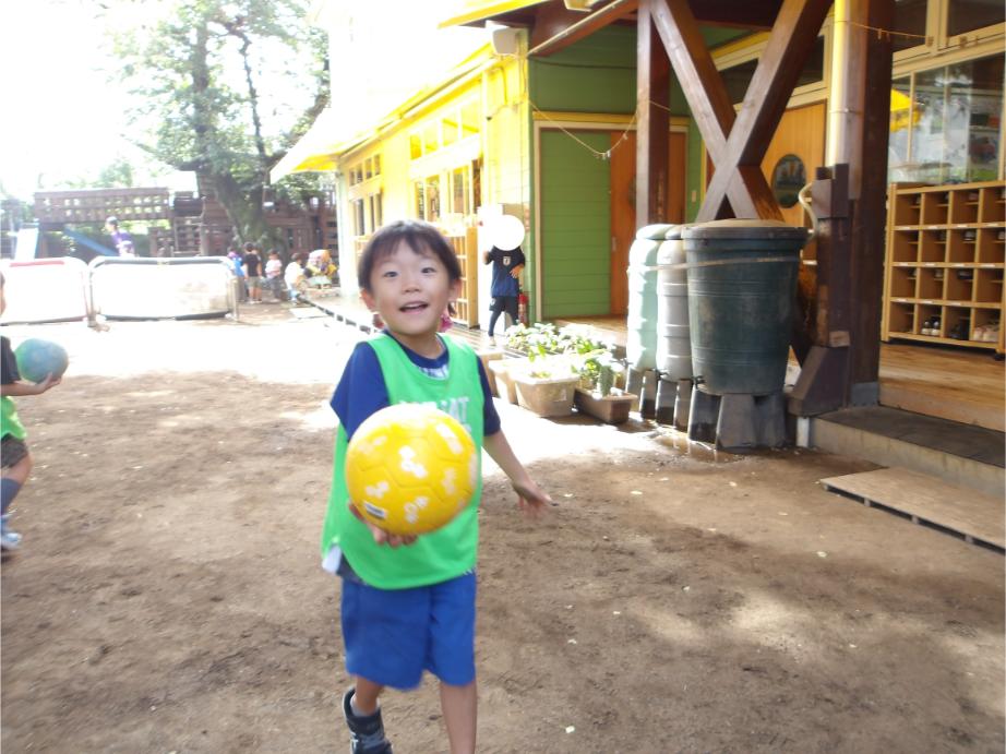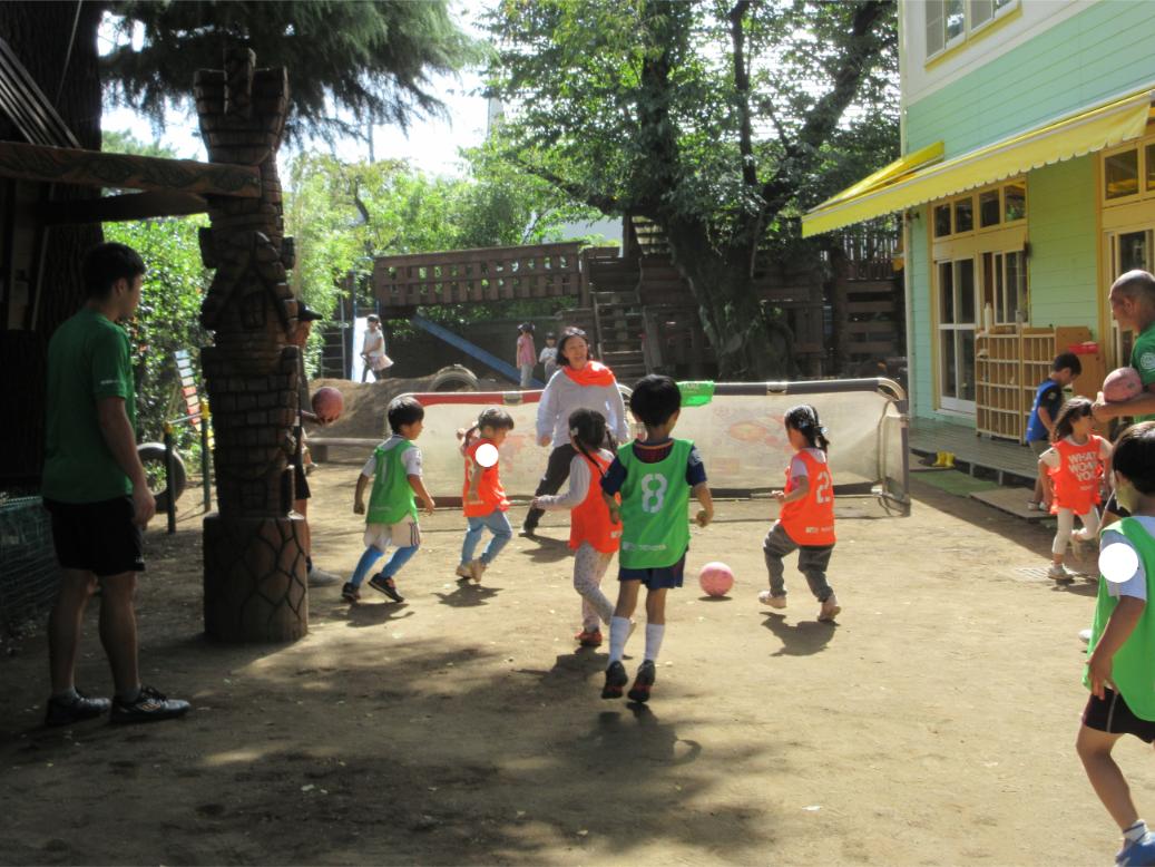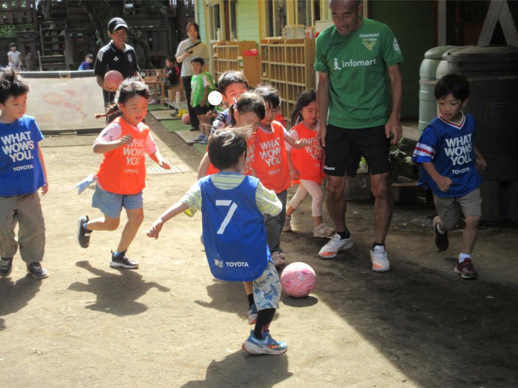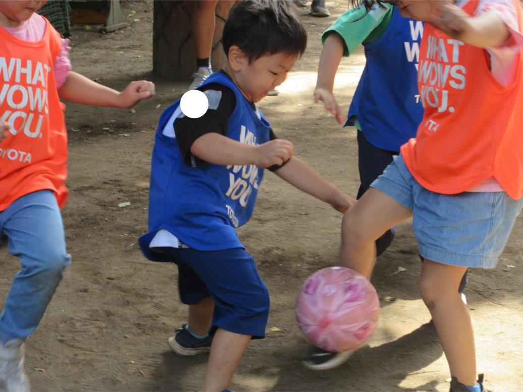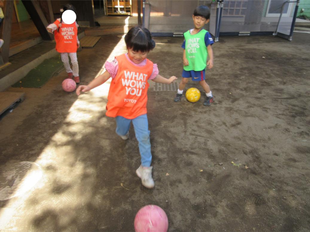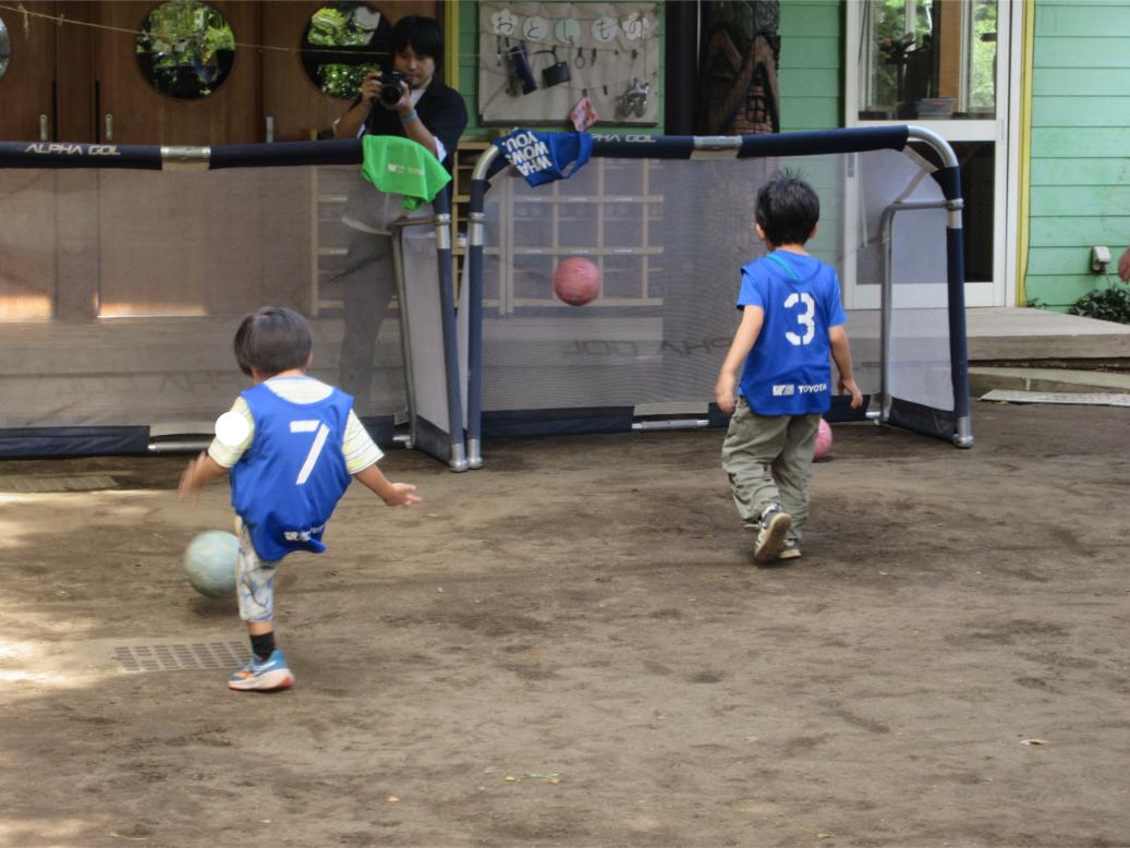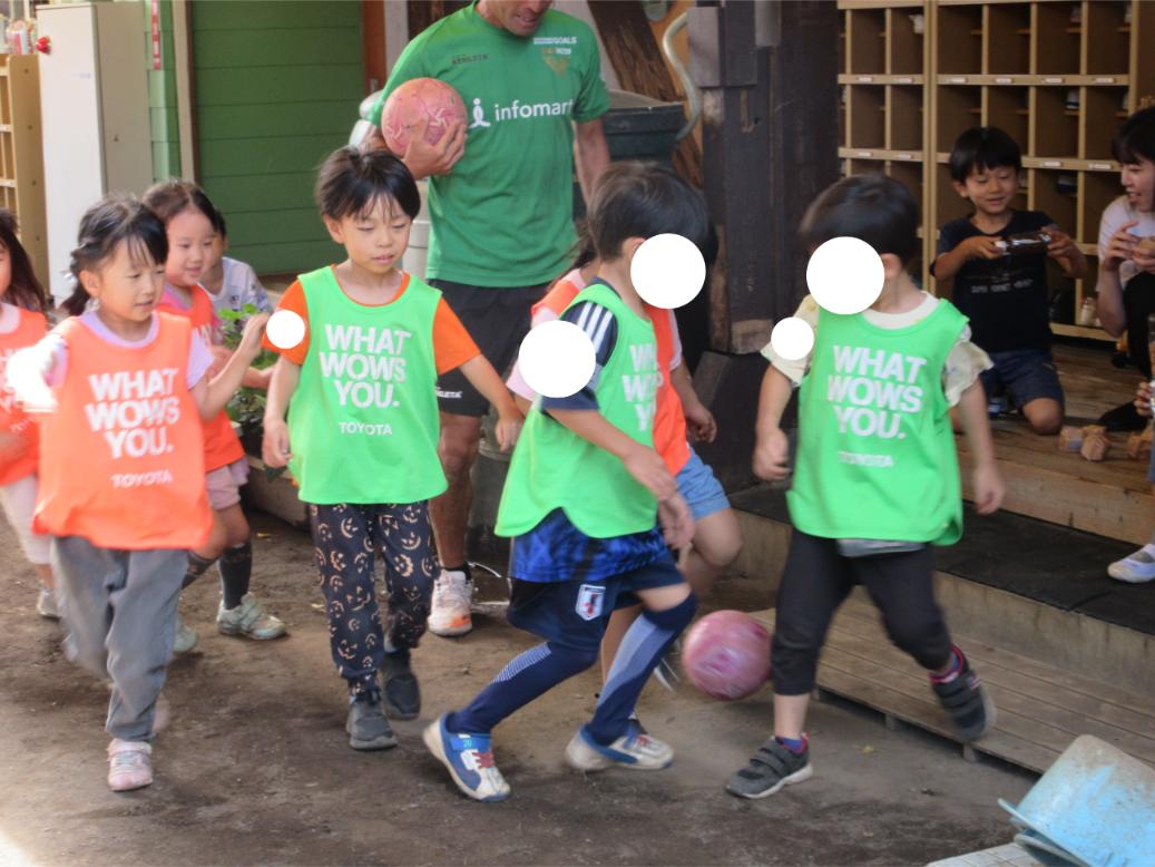 サッカー教室以来、サッカーに興味を持つ子が増え、普段の保育の中でもとても盛り上がっています。
