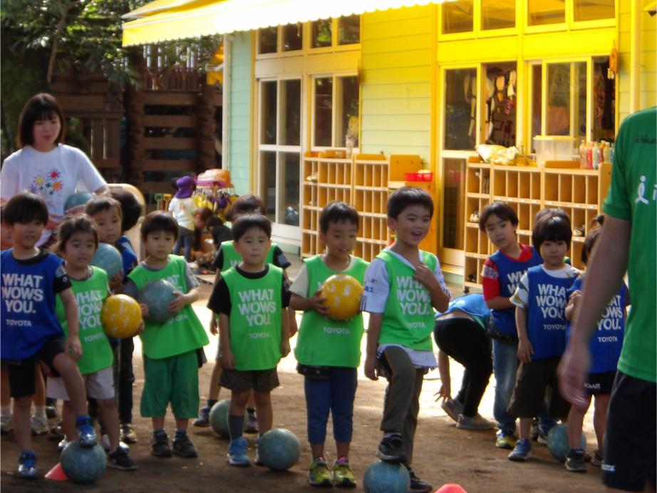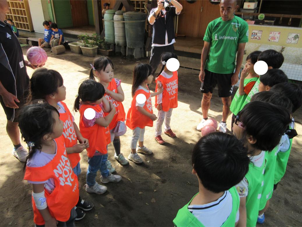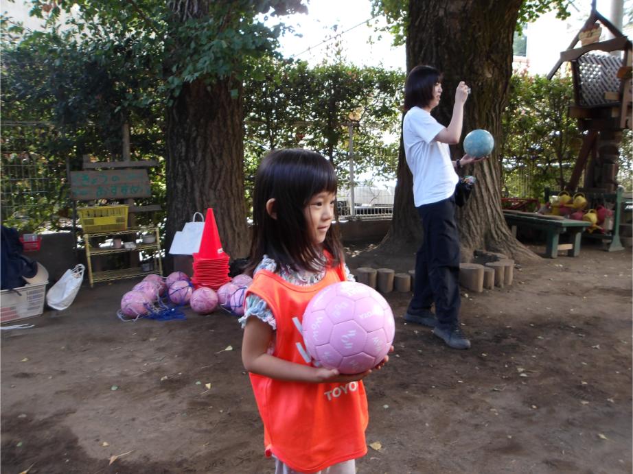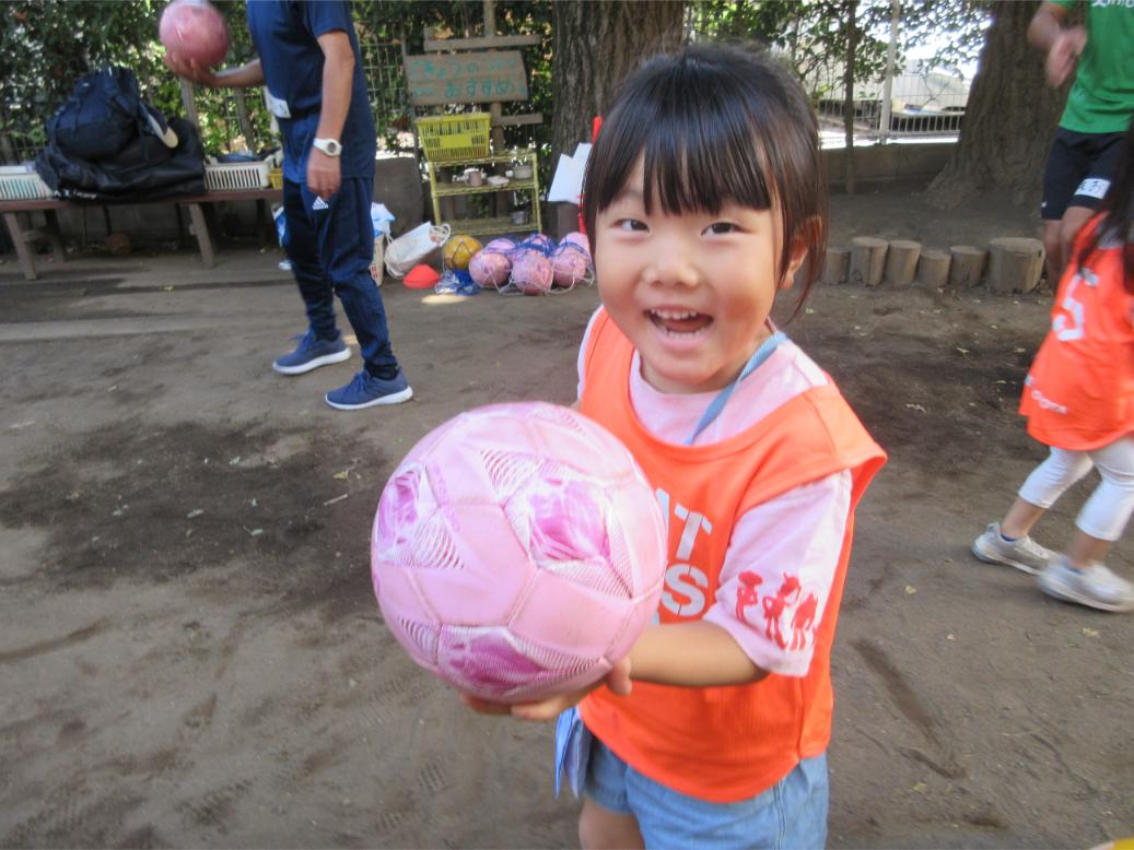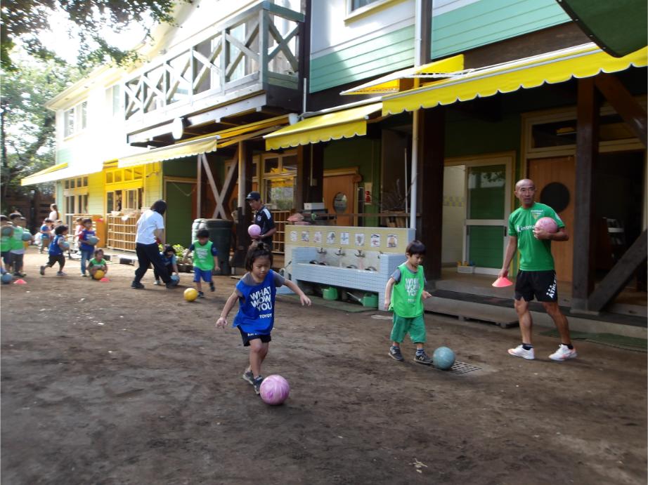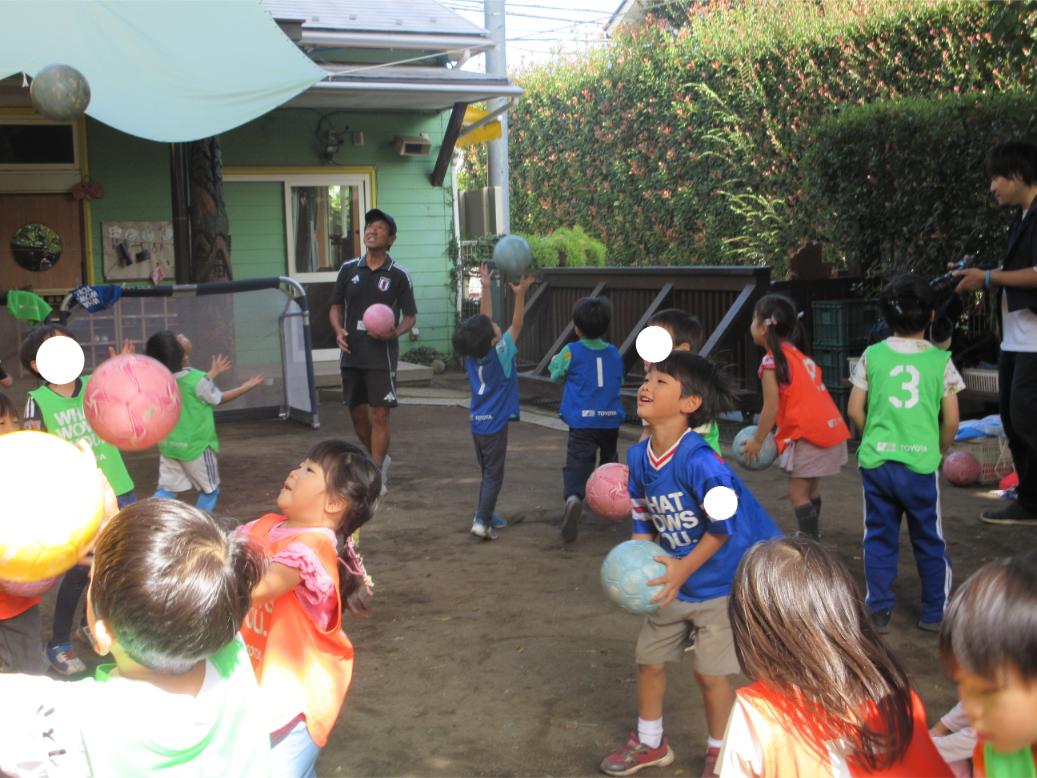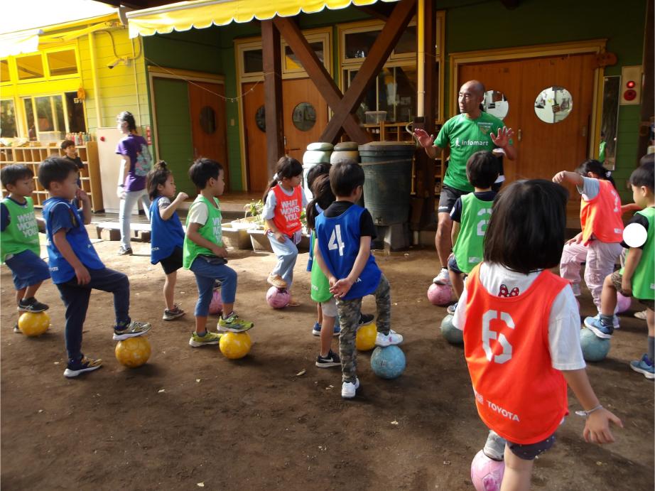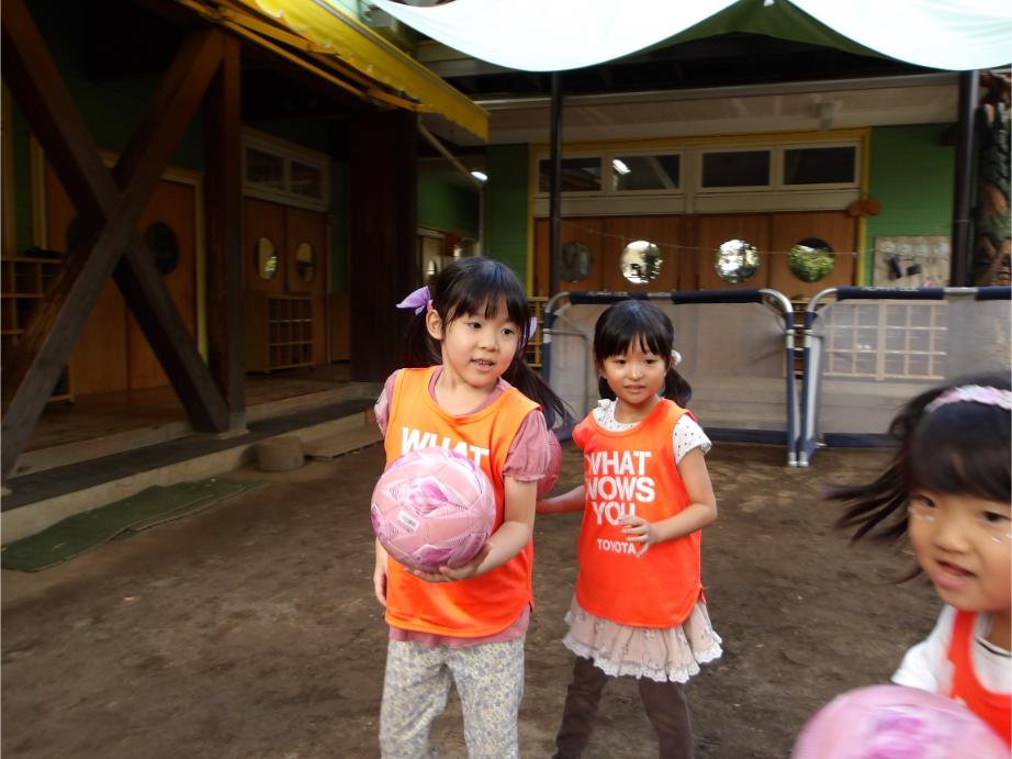サッカー教室以来、サッカーに興味を持つ子が増え、普段の保育の中でもとても盛り上がっています。