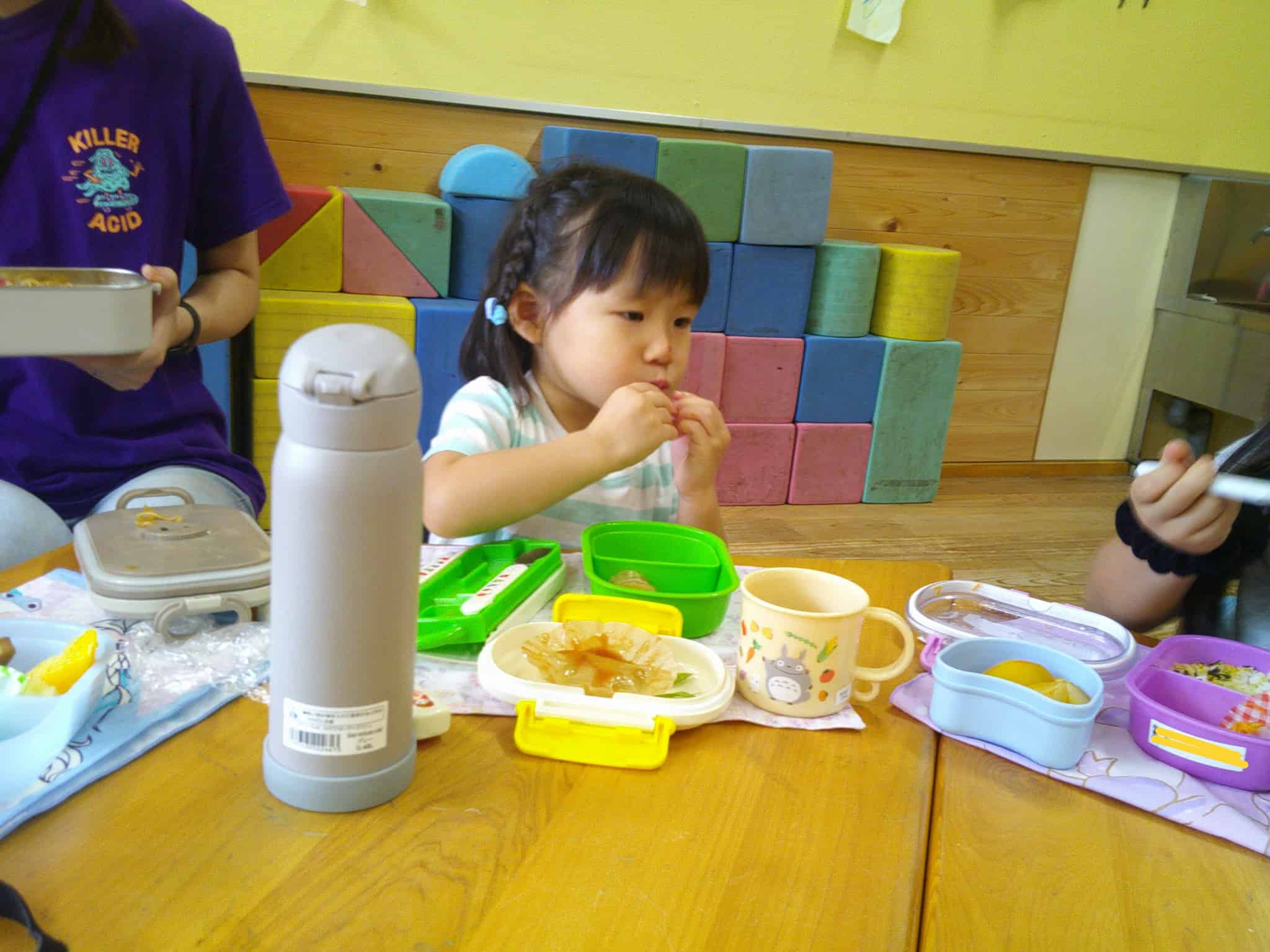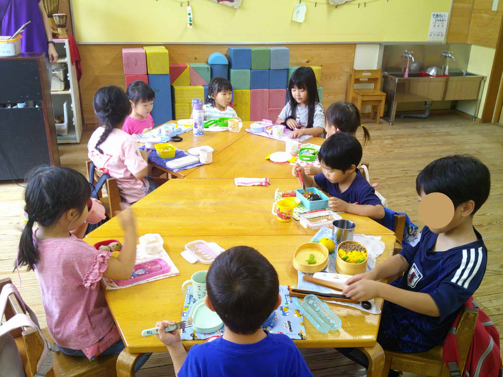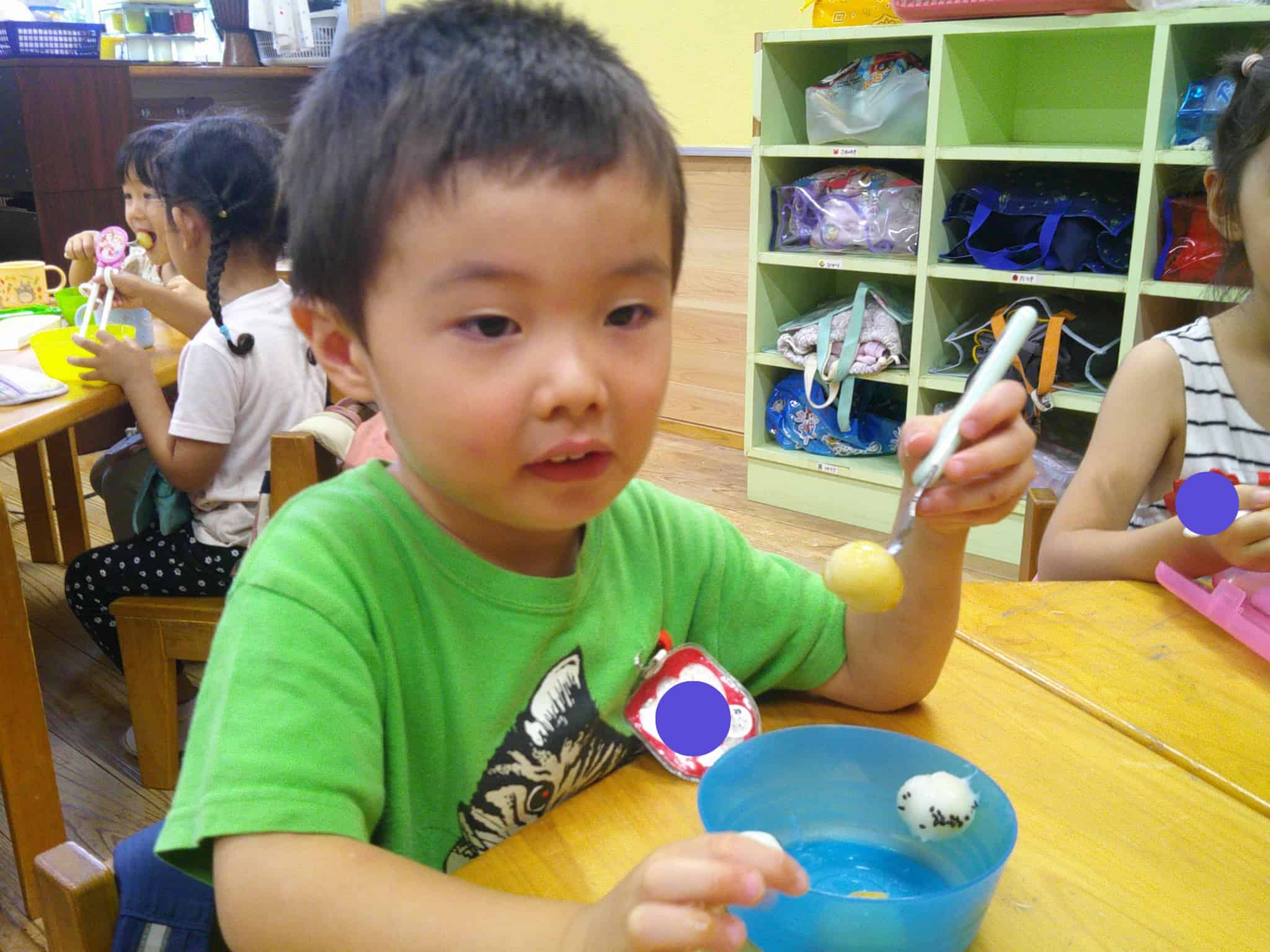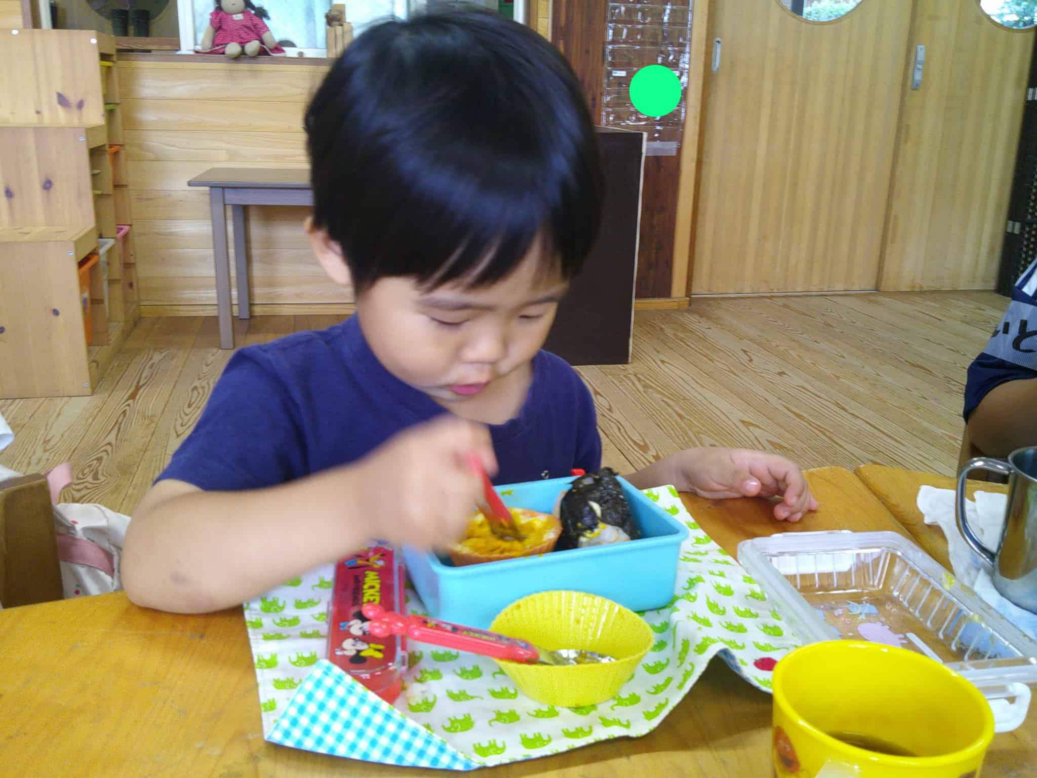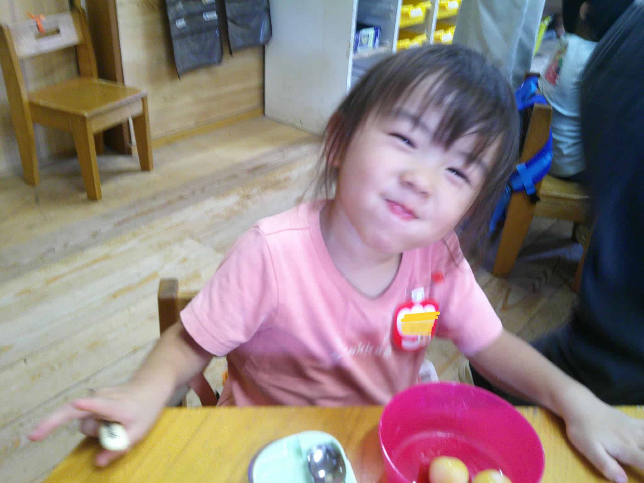 最近こんなことをしています! 園の生活にもすっかり慣れた様子の子どもたちです。 全てが新しい出会いで、刺激を受け、やってみたい!と、いろいろなことを経験しながら過ごしています。 初めてのお弁当は年長さんと一緒に!準備や片付け、どうやるのかな? 見て、真似て、教えてもらって自分たちで頑張りました。 10月6日は十五夜。年長さんが作ってくれたお月見団子を頂きました。 美味しい!!ほっぺたが落ちちゃいそう! 夜空のお月様とも出会えますように!